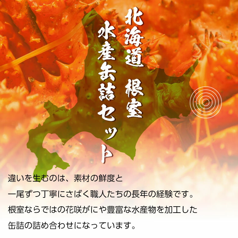 根室ならではの花咲がにや豊富な水産物を加工した 缶詰の詰め合わせになっています。