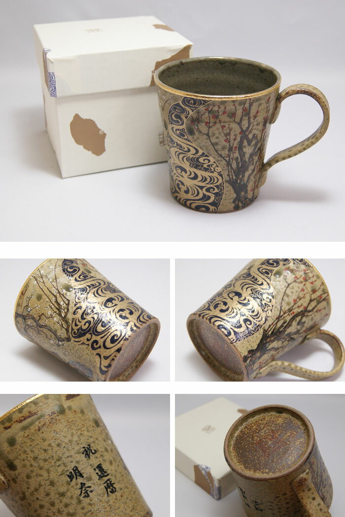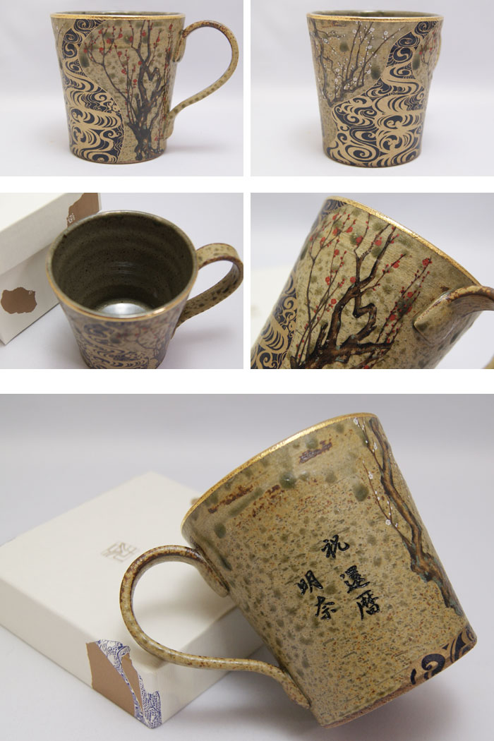 ■抹茶茶碗 和食器 名入れ ≪九谷焼 マグカップ 『光琳梅』≫ 350年の歴史を誇る九谷焼のマグカップに名入れをした上品な贈り物です。