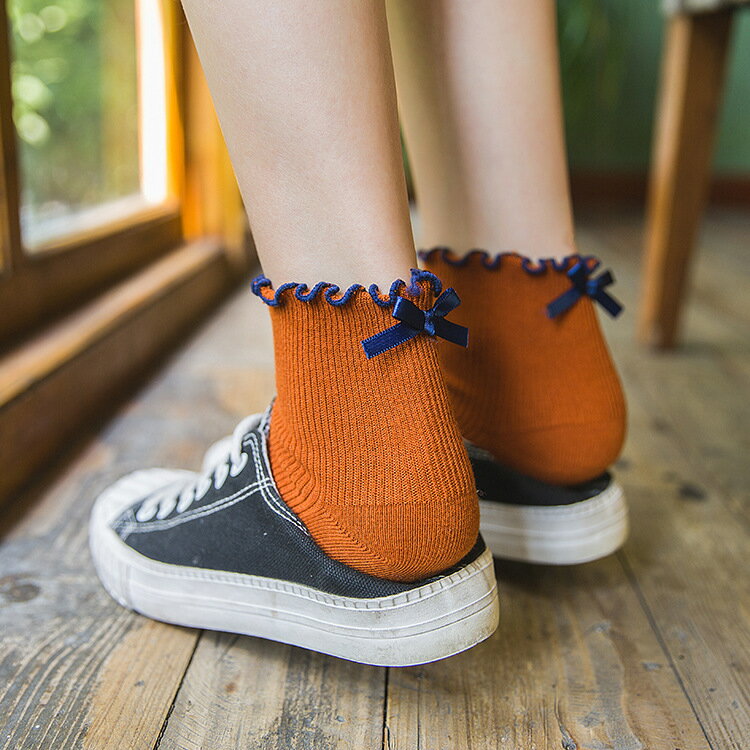 送料無料クルーソックス 靴下 レディース ソックス かわいい フェミニン 女の子 リブ リボン フリル メロウフリル おしゃれ チューブソックス