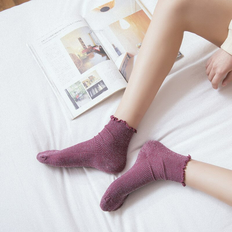 送料無料靴下 ショートソックス レディース メロウフリル ラメ リブ 無地 シンプル かわいい おしゃれ 普段使い デイリー カジュアル ファッション小物 女性用 婦人用